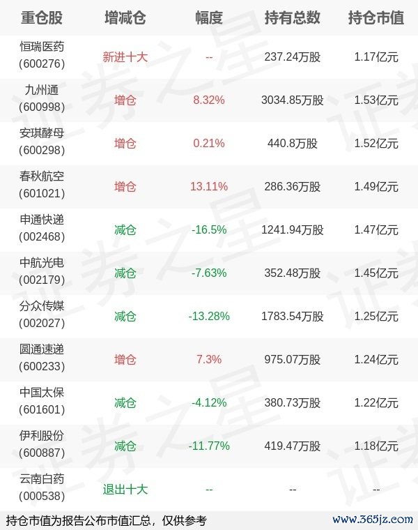 本站消息,4月22日天弘基金旗下姜晓丽 张寓管理的天弘永利债券型基金公布一季报,近1年净值增长率3.58%。与上一季度相比,该基金前十大重仓股新增恒瑞医药;并对九州通增仓233.17万股汇盈策略 ,为该基金第一大重仓股;云南白药等退出前十大重仓股;详细数据如下:
