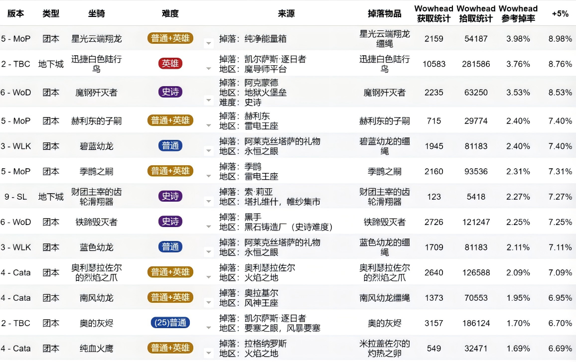 虽然这波活动并没有如大家预期那样增加10-25倍掉率,但蚊子腿也是肉,这多加5%的固定掉率也算不错了。小伙伴们有想刷的坐骑或者幻化吗?欢迎在下方留言分享。