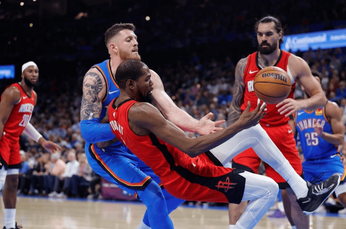 火箭队一直没有办法将他们的进攻潜能发挥到极致,虽然他们的“死亡五大”首发阵容是NBA 有首发阵容记录以来的50多年的时间里历史最高的,但杜兰特打得却并不舒服,空间问题始终存在。杜兰特在对阵活塞队的比赛中得到了全场最高的37分,得益于火箭队在下半场开局时的变阵,乔什-奥科吉出现在了首发阵容中。奥科吉的作用立竿见影,使得场上只留下申京这一名中锋,火箭队在第三节找到了比赛的节奏。